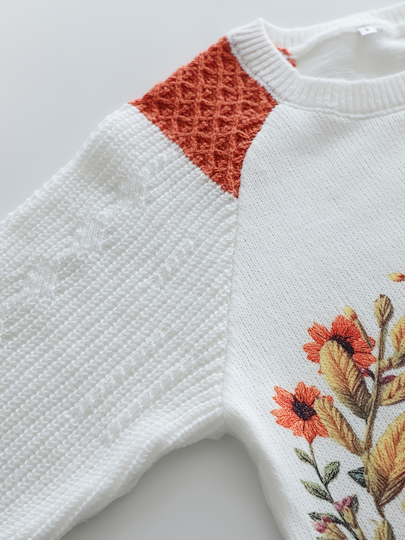 Women's Sweater - Bee & Floral Print Pattern Sweater, Beige//Orange/Purple/Teal/Black/White/Gray/, Fall Shoulder Sleeves for Everyday & Formal Outfits
