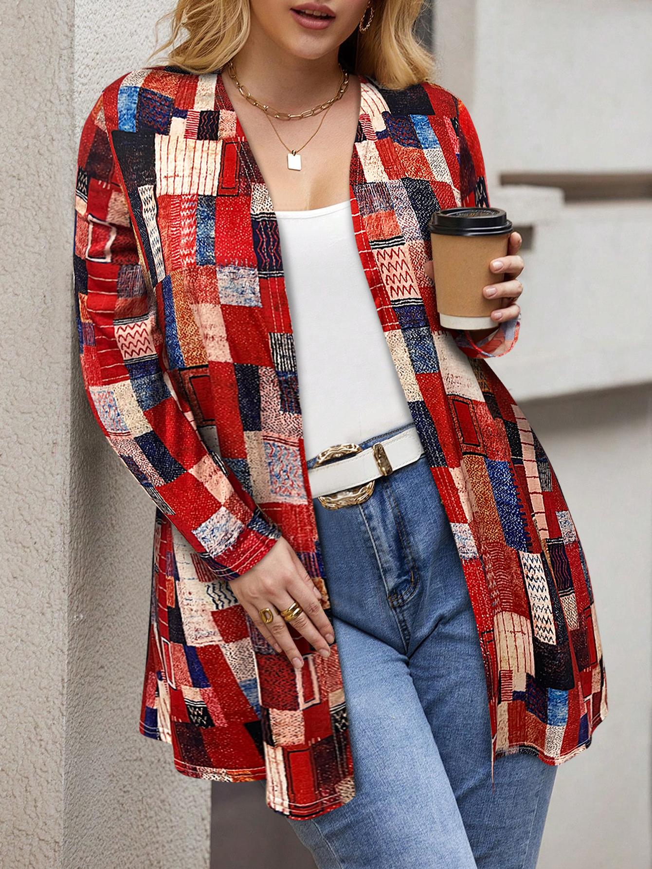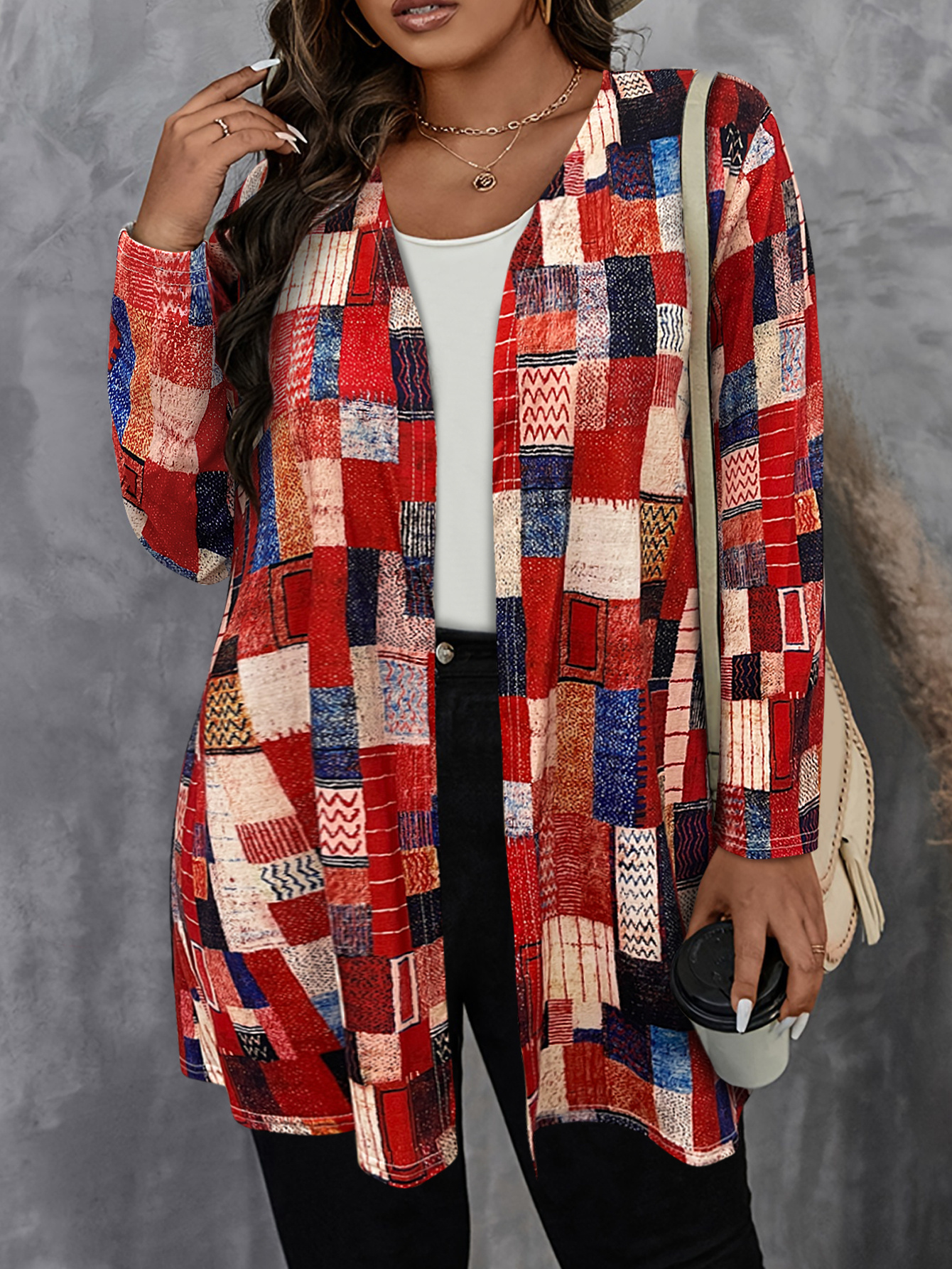 Plus Size, Women's Plus Size Oversized Geometric Pattern Cardigan Sweater - Long Sleeve Winter Warm Coat with Multicolor (Red/Blue/Black/White/Beige/Brown) | Machine Washable Casual & Formal Outerwear for Fall Winter Layering | Cozy Sweater Jacket, Oversized Sweaters for Women, Winter Jacket for Women Plus Size, Plus Size Cardigan, Lightweight Cardigan for Women, Plus Size Winter Coats for Women, Cold Weather Wear, Stylish Knitwear, Soft Fabric, Comfortable Texture