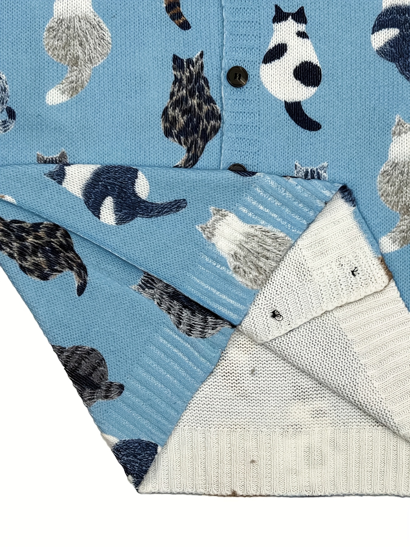 Plus Size, Women's Plus Size Print Cardigan Jacket - Oversized Collar Long Sleeve Coat with Face & Paw Button Patterns, Spring/Fall Casual Outerwear (Turquoise) - Hand Washable Sweater for Large Women, -Themed Events & Everyday
