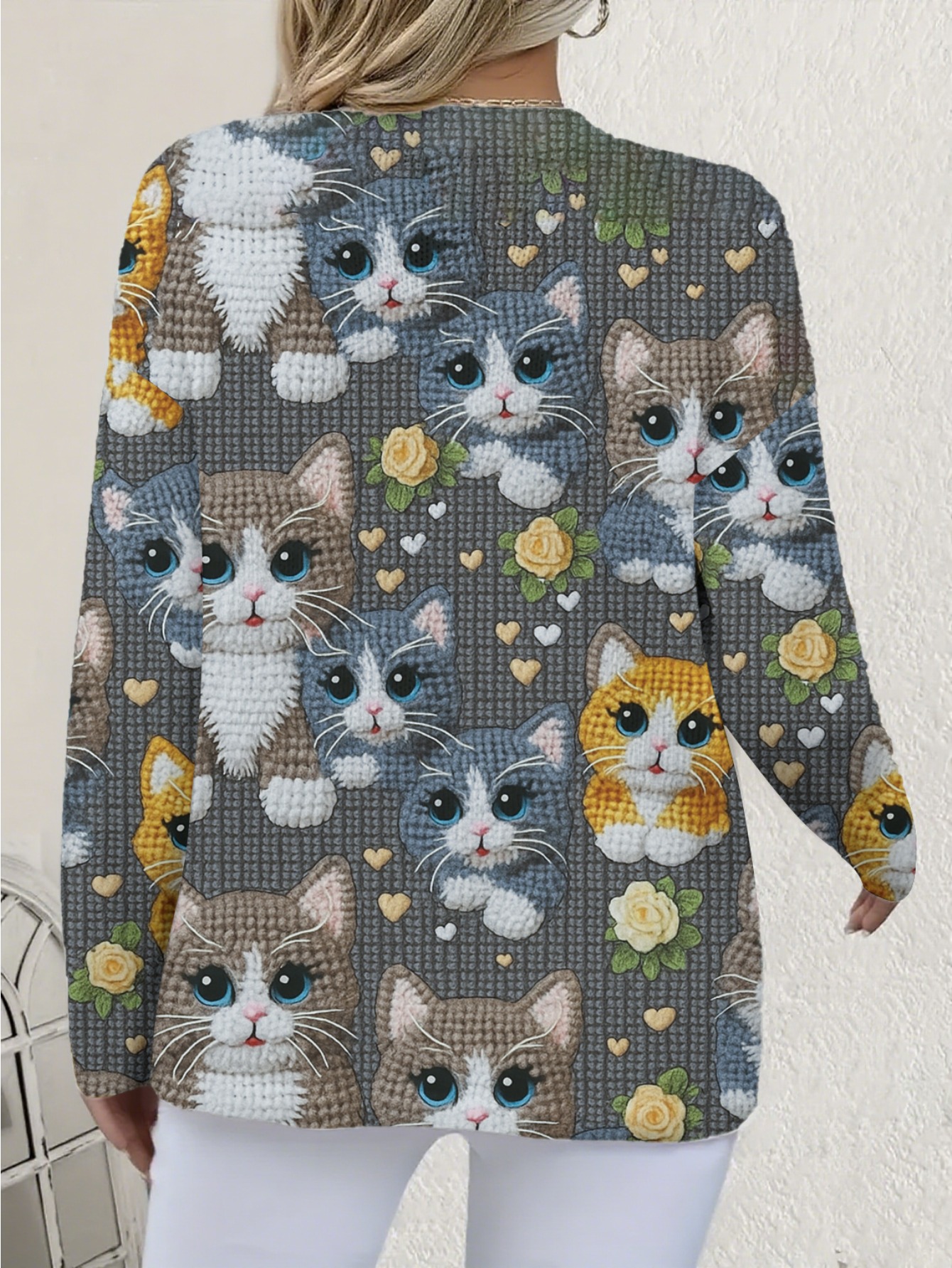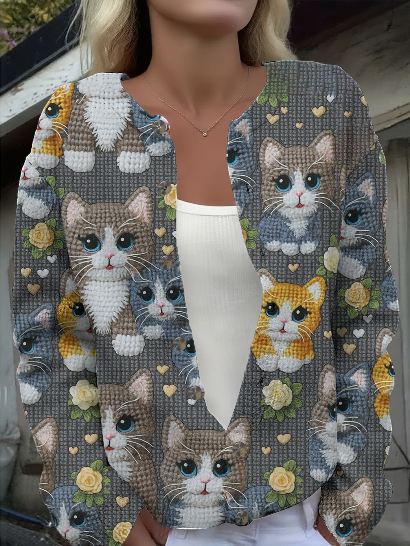 Plus Size, Plus-Size Women's Oversized 3D Printed & Kitten Cardigan Sweater - Soft Polyester Jacket with Button Front, Cute Tabby/Tuxedo/Calico Patterns, Spring/Fall Outerwear (Machine Washable) for Pet Lovers