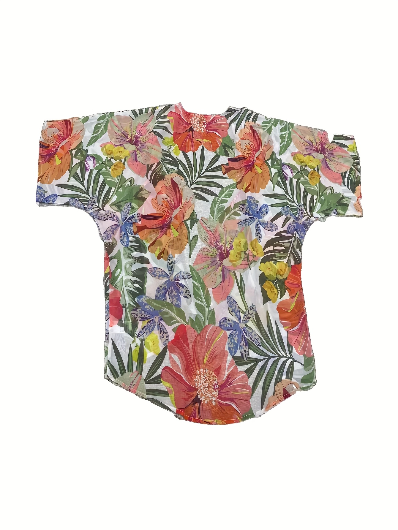 Women'S Floral Print Open Front Cardigan, Polyester Half Sleeve Casual Top with Collarless Design and Non-Stretch Fabric for Spring/Summer/Fall Festive Occasions