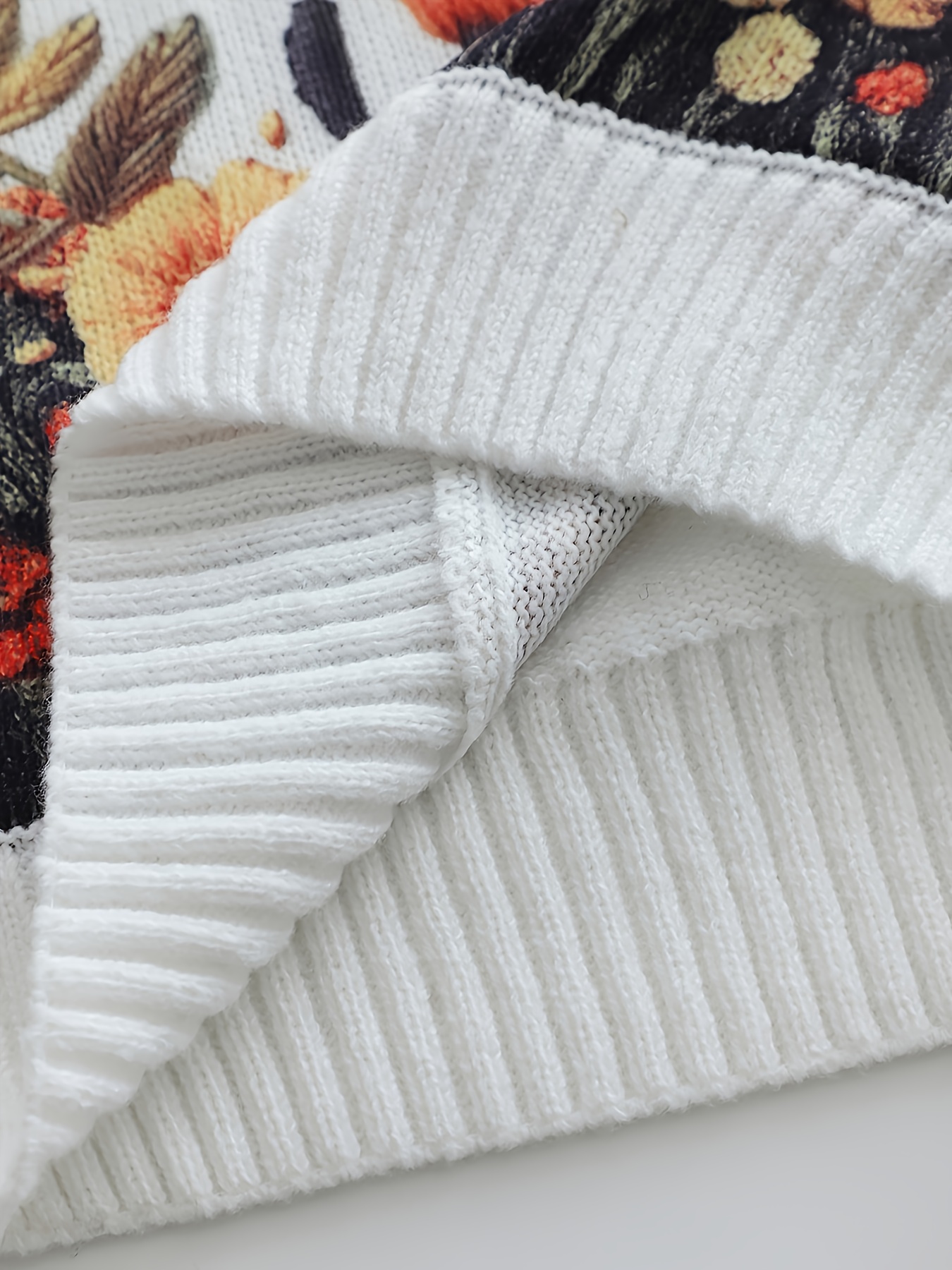 Women's Sweater - Bee & Floral Print Pattern Sweater, Beige//Orange/Purple/Teal/Black/White/Gray/, Fall Shoulder Sleeves for Everyday & Formal Outfits