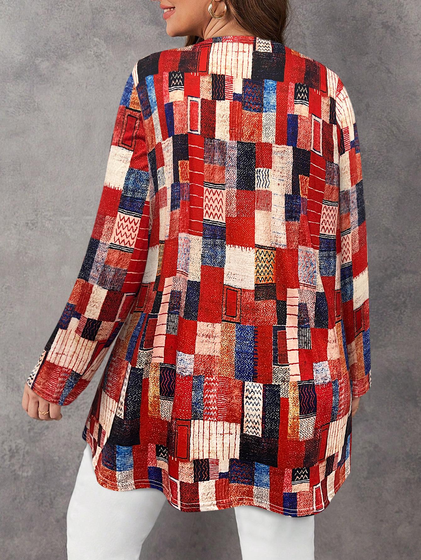 Plus Size, Women's Plus Size Oversized Geometric Pattern Cardigan Sweater - Long Sleeve Winter Warm Coat with Multicolor (Red/Blue/Black/White/Beige/Brown) | Machine Washable Casual & Formal Outerwear for Fall Winter Layering | Cozy Sweater Jacket, Oversized Sweaters for Women, Winter Jacket for Women Plus Size, Plus Size Cardigan, Lightweight Cardigan for Women, Plus Size Winter Coats for Women, Cold Weather Wear, Stylish Knitwear, Soft Fabric, Comfortable Texture