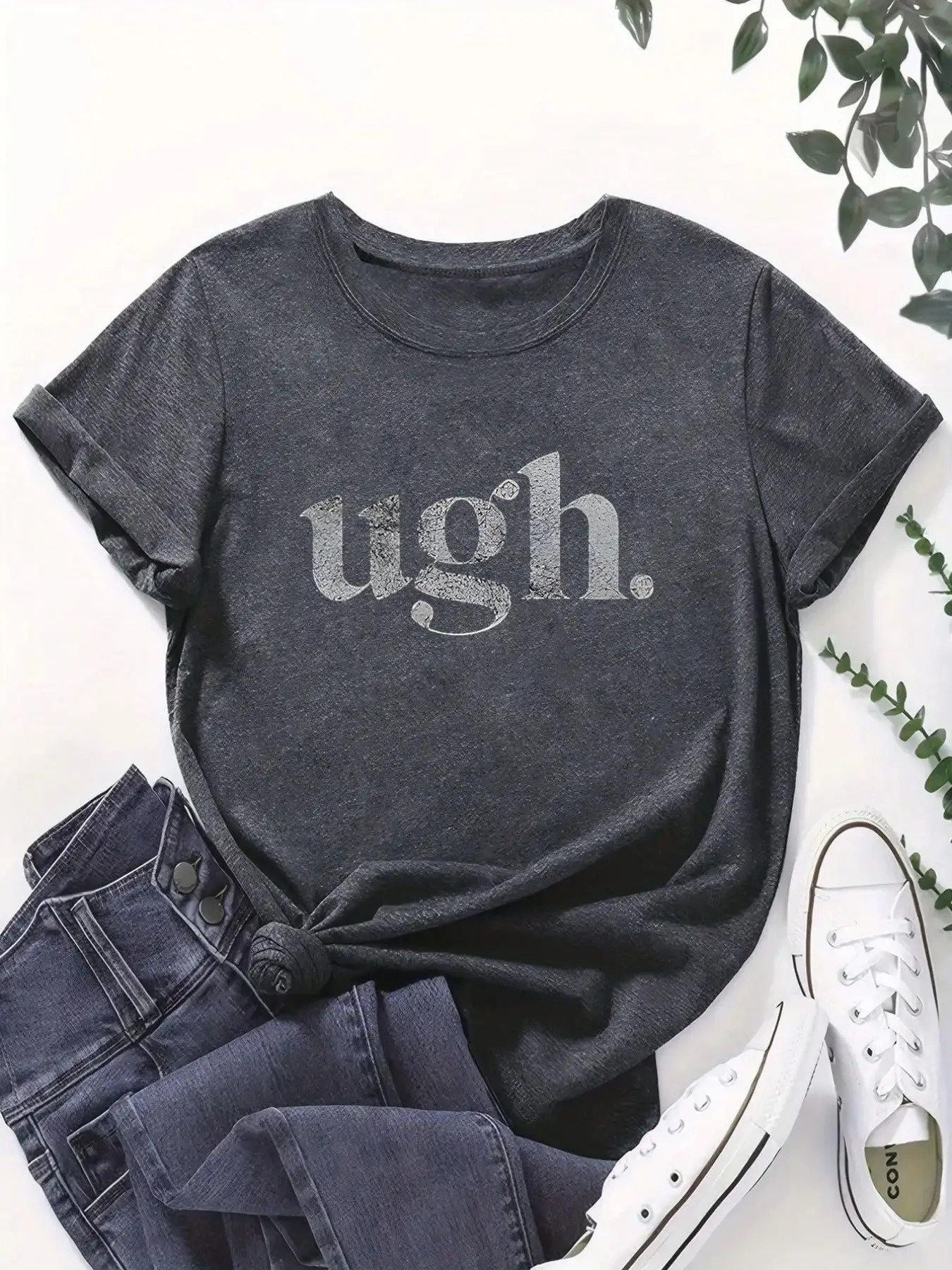 Women'S Casual Short Sleeve T-Shirt - "ugh." Graphic Print, Soft & Comfortable, Perfect for Outdoor, Spring/Summer Collection, Casual Wear|Graphic Tee|Comfortable Fit
