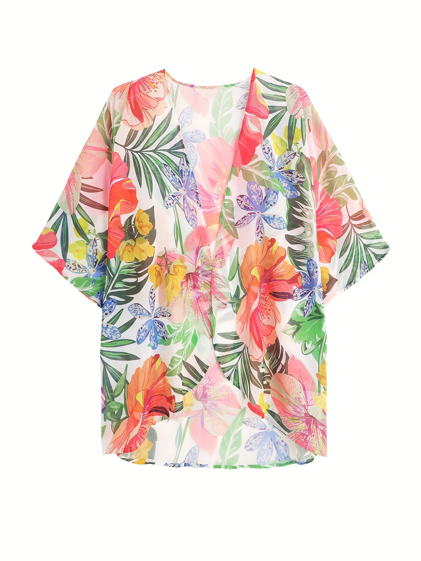Women'S Floral Print Open Front Cardigan, Polyester Half Sleeve Casual Top with Collarless Design and Non-Stretch Fabric for Spring/Summer/Fall Festive Occasions