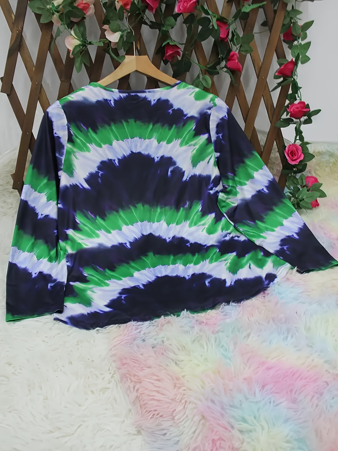 Women's Plus Size Bohemian Tie-Dye corset top - Turquoise green, black, and blue/teal longline shirt | H-Line Silhouette | Machine Washable Layering Blouse for Fall/Winter | Casual Everyday & Formal Outfits | Ideal Women's Gift with Round Neck & Vibrant Bohemian Print | Comfortable & Stylish for Layering or Solo Wear, Jersey Dress For Women Plus Size, Plus Size Tshirt Dress, Tshirt Dresses For Women, Tshirt Dress Women Plus Size, T Shirt Dresses For Women Plus Size